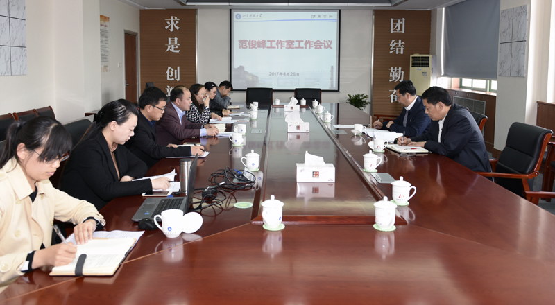 4月26日,校党委副书记尹华主持召开“范俊峰工作室”工作会议,推进山东高校辅导员名师工作室建设工作。学生工作处(部)处(部)长诸葛福民、“范俊峰工作室”全体成员参加了会议。