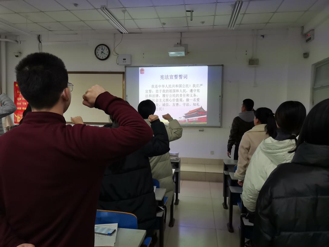 为深入开展尊崇宪法、学习宪法、维护宪法、运用宪法的教育活动,迎接全国第六个国家宪法日,12月4日,狂人小说 本科学生党支部在J1-114举行“我与宪法”主题党日活动。狂人小说 全体辅导员与本科生党员参加本次活动。在诸葛长华老师带领下,全体本科生党员进行宪法宣誓。通过本次主题党日活动,普及了宪法知识,强化了法律意识,使宪法意识更加深入人心,有利于推动广大学生成为社会主义法治的忠实崇尚者、自觉遵守者、坚定捍卫者。(通讯员:诸葛长华)