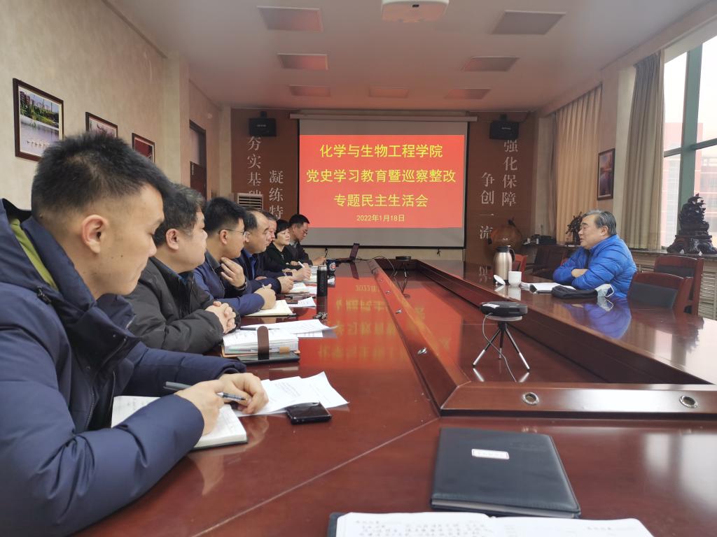 下一步的发展,达到了民主生活会的预期效果。姚庆国对于化工学院开展好下一步工作提出要求:一是领导班子要按照党中央、省委和学校党委的要求,将党史学习教育走深走实,推向深入;二是将党史学习教育的成果转化为推动学院工作的动力,真正做到学以致用、融会贯通,通过工作实效来反映党史学习教育的成果,推动学院高质量发展。