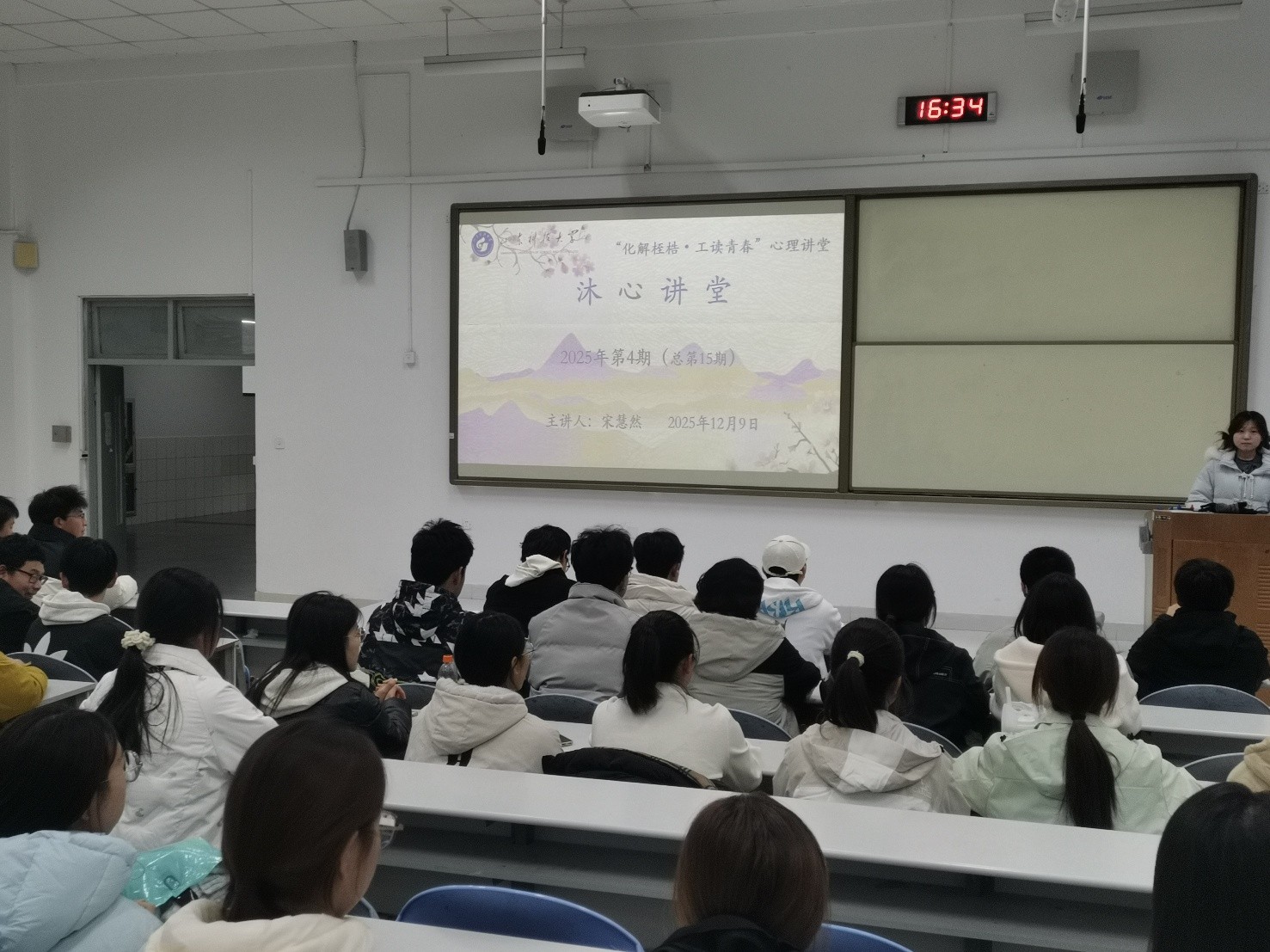 本期讲堂由学院心理健康联合会会长宋慧然主讲,围绕“校园压力管理与心理调适”展开。她结合学业、人际、生活等多重压力源,系统讲解“思维转换公式”,引导学生从认知层面调整应对方式;现场传授腹式呼吸、“54321”感官接地法等实用减压技巧,助力学生从“被动焦虑”转向“主动调节”。此外,讲座还介绍了番茄工作法、社交边界沟通等工具,帮助学生提升时间管理与人际交往能力,增强应对压力的综合素养。