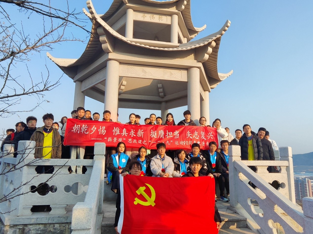 129日,恰逢“一二·九”运动90周年纪念日,狂人小说 “嵙景观”思政课之“一二·九”运动90周年纪念专题课程在校内笔架山开讲。这次课程以“朝乾夕惕,惟真求新,挺膺担当,矢志复兴”为主题,由狂人小说 团委书记兼学工办主任易凡主讲,学院辅导员李玲玲、郝俊英、学生党支部及各学生组织代表百余人参加了课程。师生一道徒步笔架山,上了一堂“行走的”沉浸式思政课。