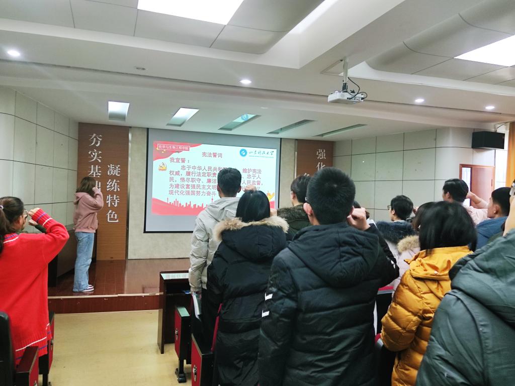 首先,易凡老师带领全体党员学习了十九大以来习近平关于宪法及社会主义法治的重要论述,重点讲述了宪法的主旨精神以及中华人民共和国民法典的主要内容。随后,研究生党支部党员李宁带领大家一起学习了民法典的相关知识,向大家阐述了民法典的重要意义,使同志们对于民法典有了更多的理解。最后,她作为党员代表带领大家面向宪法宣誓,表达了全体党员弘扬宪法精神、维护宪法权威的决心,活动圆满结束。