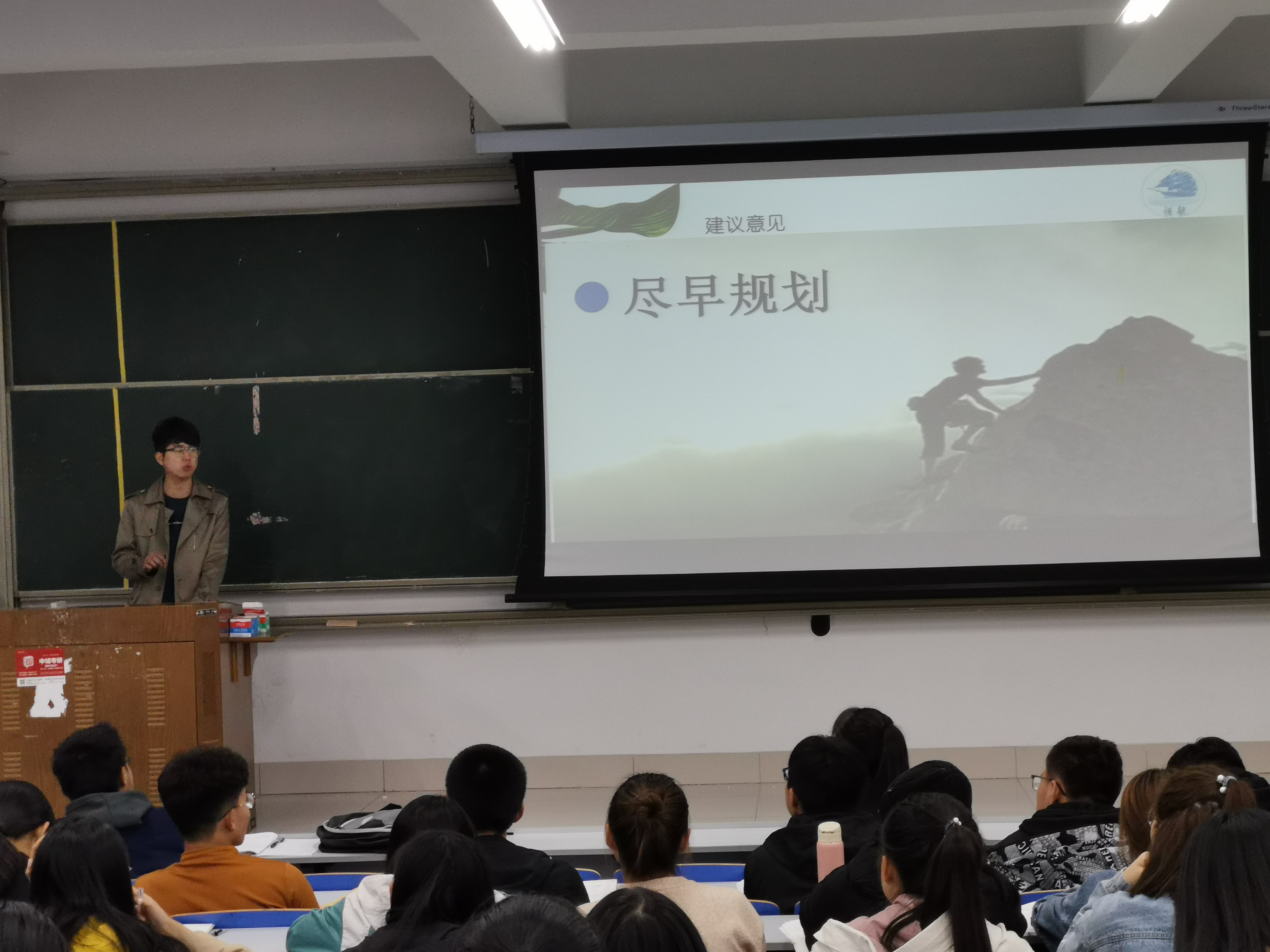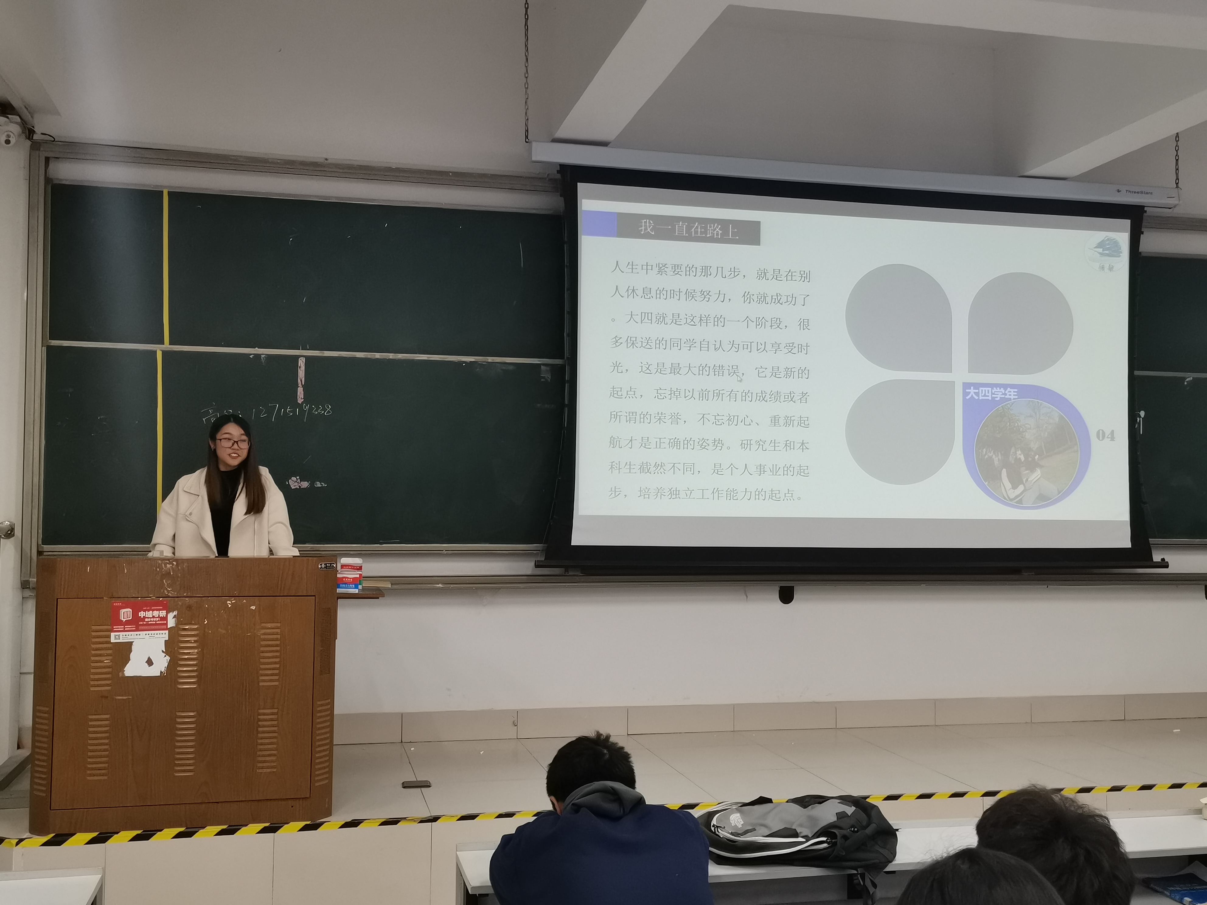 学风建设的重要项目,每年11月启动,已历经三年,主要内容是由保研同学组成领航宣讲团,分批次向低年级学弟学妹分享大学经历,以正学风促成才。参与本次宣讲的四位同学均以优异的成绩被保送至知名重点大学,他们以PPT讲述的形式向在场同学介绍了三年多的大学历程,展示了各项荣誉奖励,分享了学习工作感悟。他们以自己在大学的成长历程告诉新生同学,一方面,要不忘初心,认识到学习是首要任务,唯有时刻检视初心,刻苦钻研,才能不负青春韶华。另一方面,要牢记使命,大学生的使命是为祖国为人民努力学习,立志成长成才,为国为民奉献,在追求理想的过程中难免忙碌甚至疲惫,但也收获充实快乐,成就个人价值。