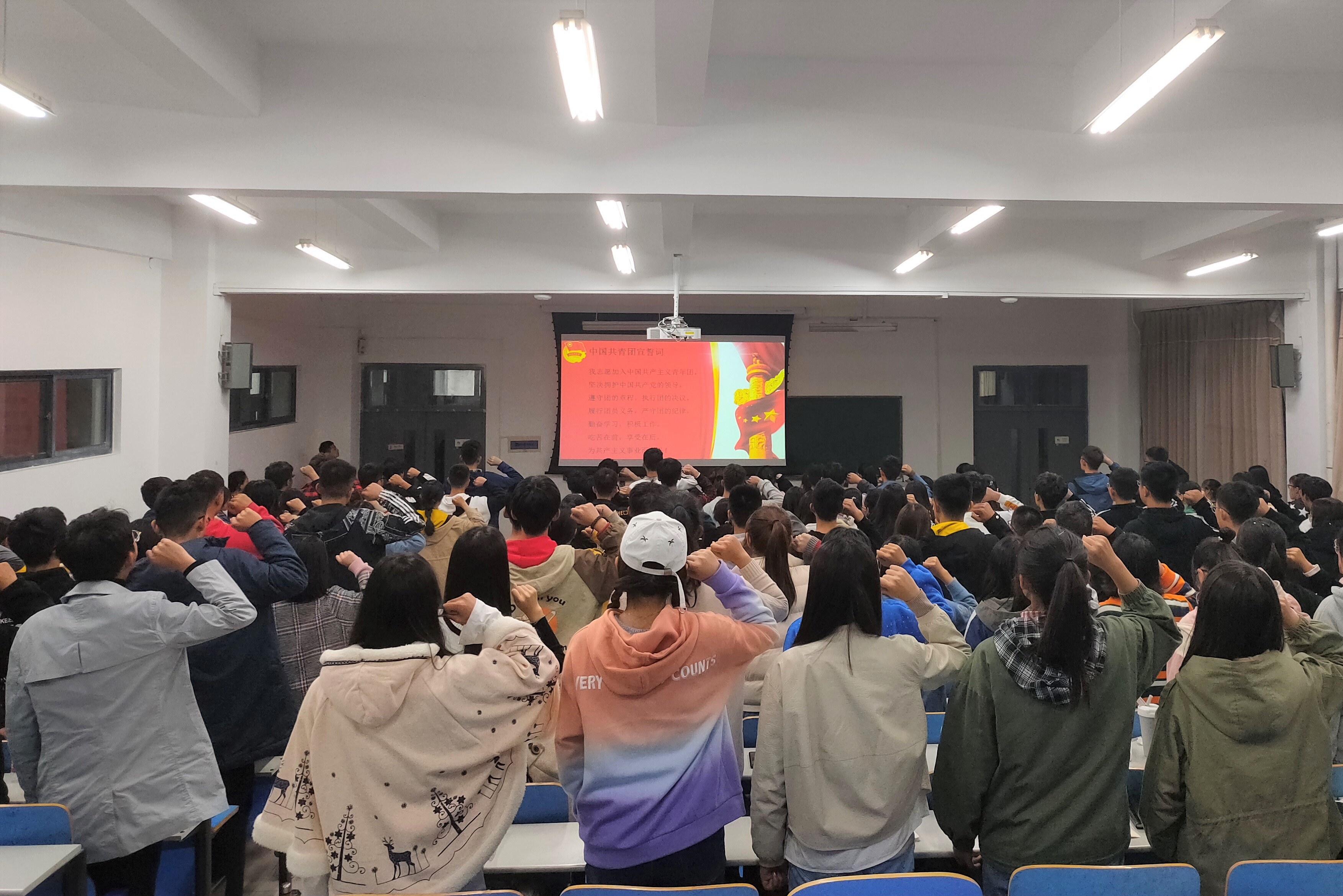 简短的开班仪式之后,易凡老师首先开讲,她说,支部委员要有坚定的政治立场和牢固的责任意识,正确把握工作方向,认真落实工作任务,凡事尽职尽责尽心,才能将工作做实做细做好。许婷婷老师以“服务他人,成就自己”为题,分享了自己在大学阶段担任团支书的经历,并就遇到的问题以及工作的收获,鼓励大家树立服务意识,发扬奉献精神。诸葛长华老师向同学们深入论述了“勤、谨、和、缓”四个字的意义,引导大家养成良好的工作习惯,不断创新工作方法,做好个人生涯规划。李玲玲老师着重讲述了大学生团员心理问题的现状,并介绍了一些应对方法,对保持团员同学心理健康起到了积极作用。最后,全体团支部委员重温入团誓词,进行宣誓,以提醒大家不忘团员的初心,坚定共产主义信仰,牢记共青团员作为党的后备军这一光荣身份,承担自己应有的责任。