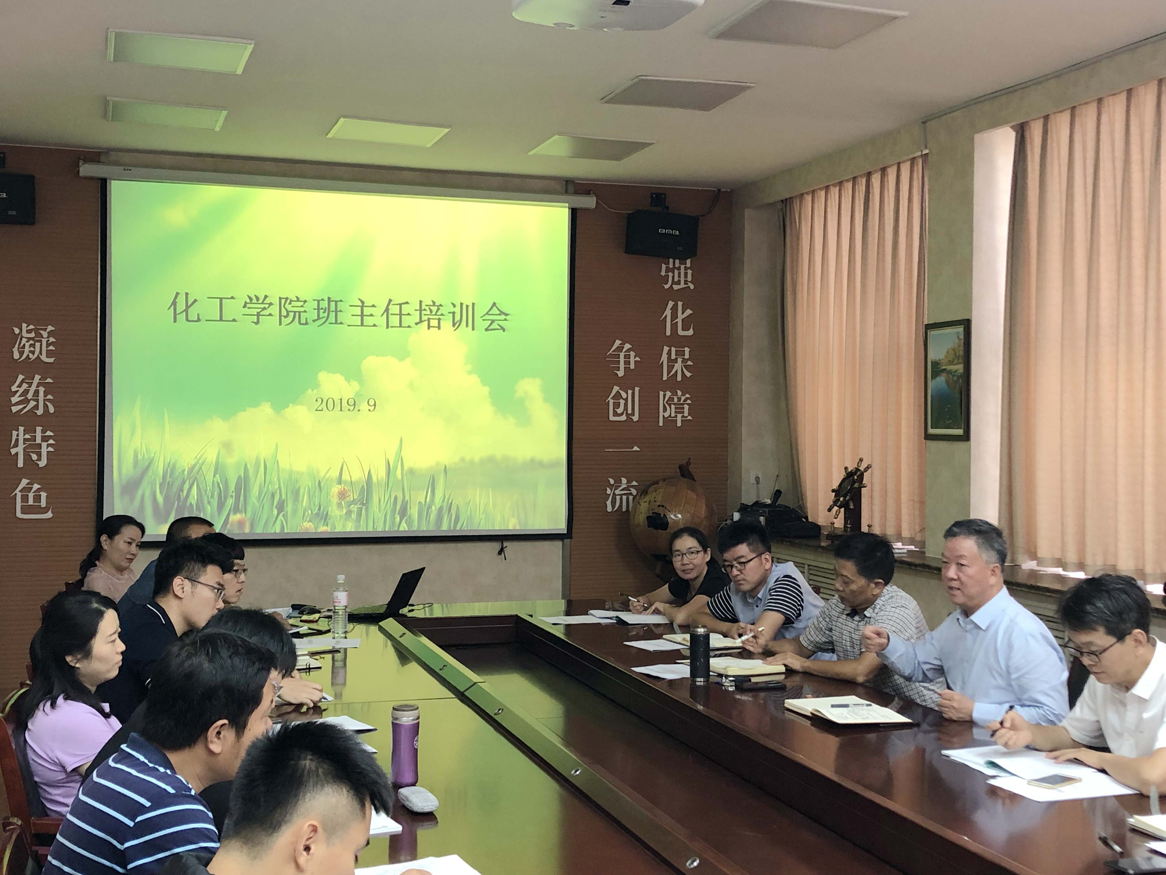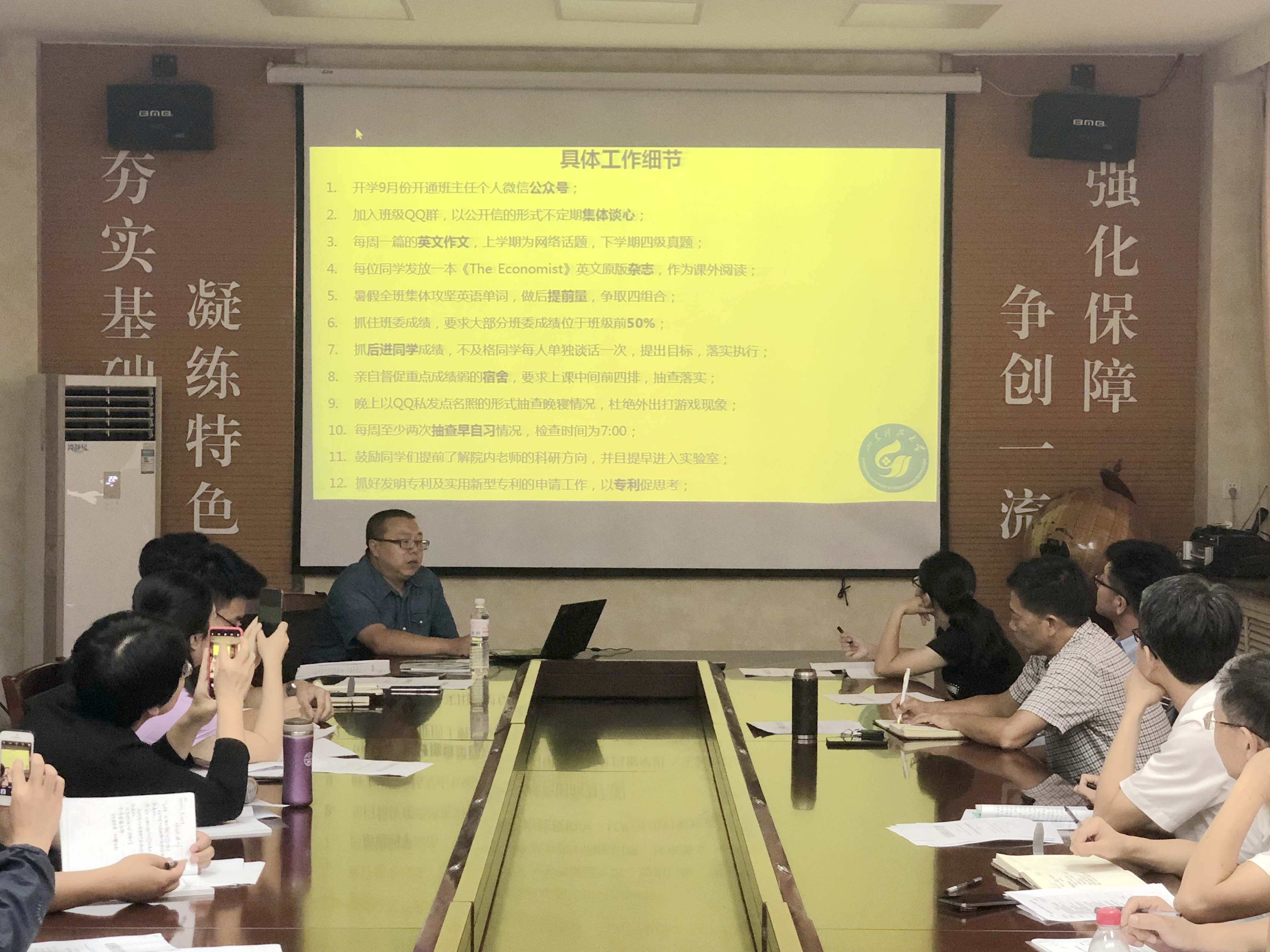 在J2-422会议室召开2019-2020学年班主任培训会。学院党委书记李垂文、院长吕宪俊出席会议并讲话,全体班主任、专兼职辅导员参加了培训会,会议由团委书记易凡主持。