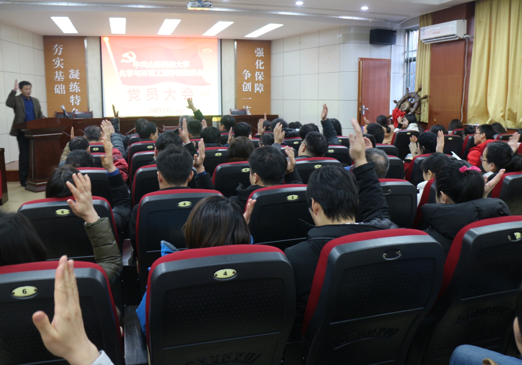 于J2-104报告厅召开全体党员大会,大会由院党委书记李垂文主持。