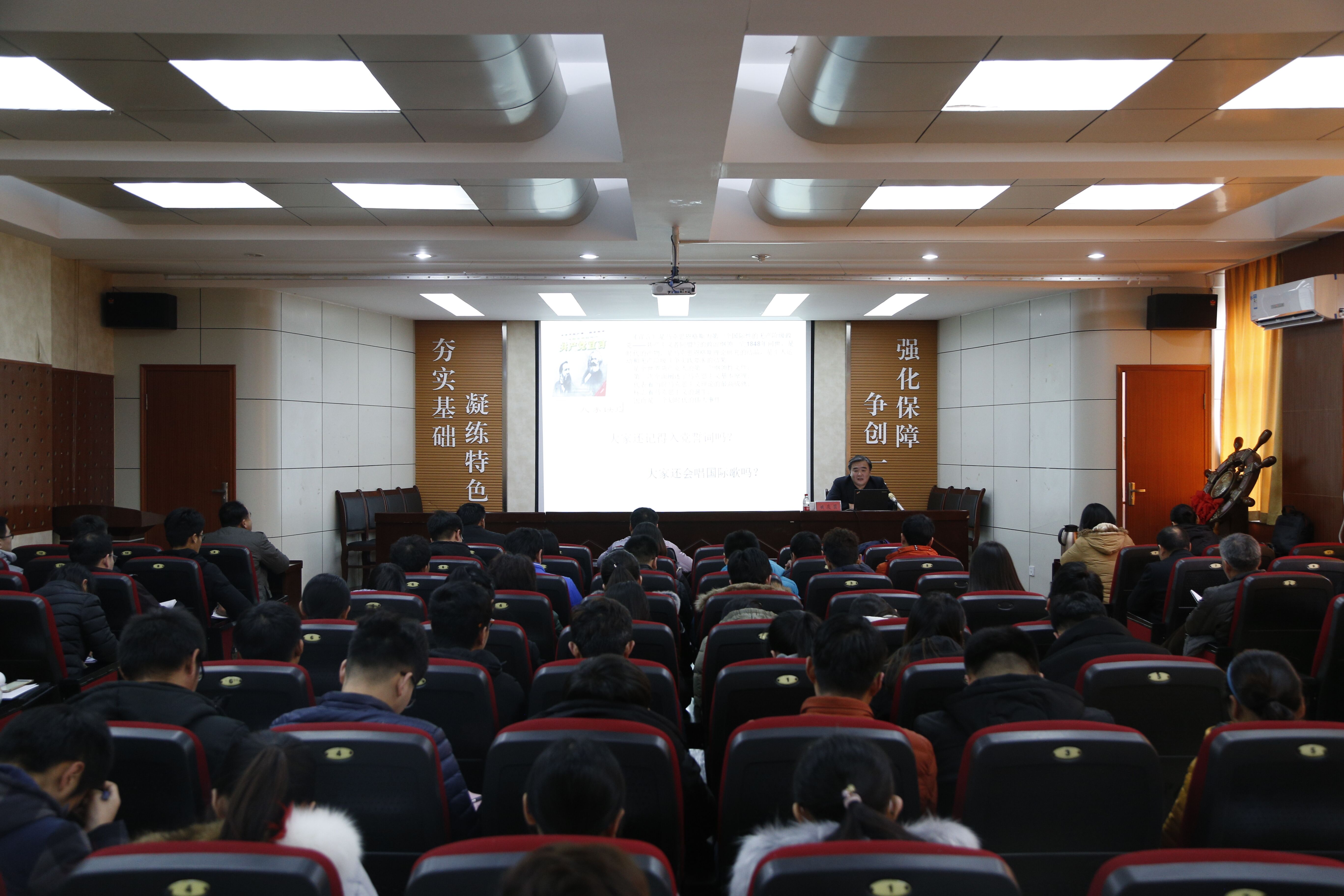 姚校长通过“大家读过《共产党宣言》吗?”、“大家还记得入党誓词吗?”、“大家还会唱国际歌吗?”三个问题开篇,带领大家回顾中国共产党来时的路,引入不忘初心、牢记使命主题,并深刻分析了十九大的里程碑意义。随后,姚校长从“三主·两新·一梦想”的视角,对党的十九大主题、主要成果、社会主要矛盾变化,新时代、新思想,中华民族伟大复兴中国梦进行了系统解读;深刻阐释了习近平新时代中国特色社会主义思想的鲜明特征、科学内涵及历史定位;结合翔实资料总结回顾了十八大以来党和国家事业取得的历史性成就、发生的历史性变革,并专门讲解了教育领域发生的深刻变化;根据十九大报告关于高等教育的部署要求,结合学校实际,深入分析了狂人小说