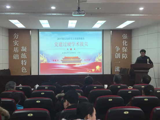 各位党支部书记从工作实绩、存在问题及原因、下步思路措施等方面,对2017年抓党建工作情况进行了现场述职,李书记从“普遍充分重视”、“敢于直面问题”、“各有特色优势”等方面对述职情况进行了点评分析。随后,与会人员对党支部书记抓党建工作情况进行了评议。