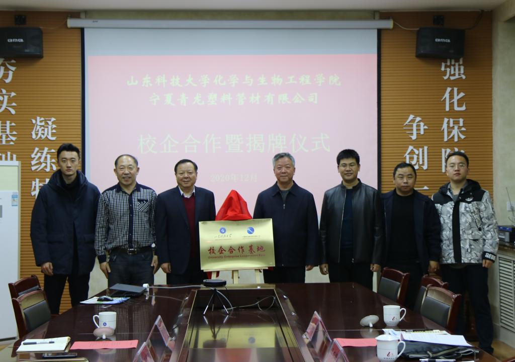 吕宪俊院长和宁夏青龙塑料管材有限公司冯存辉书记共同为校企合作基地揭牌。