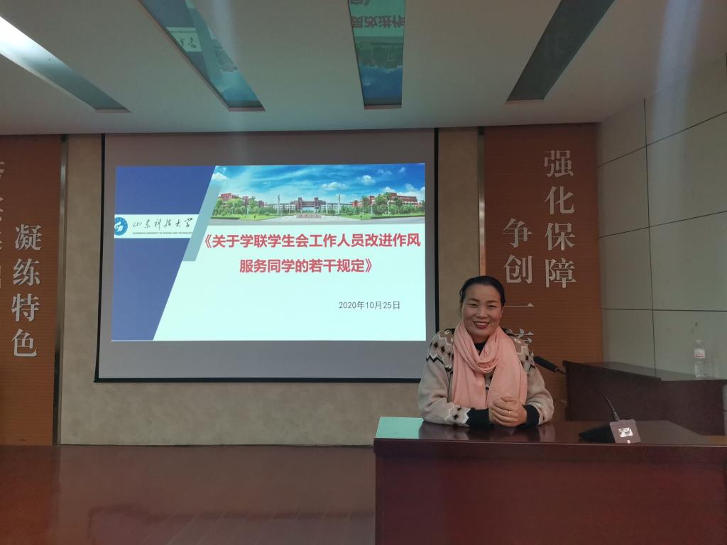 活动伊始,易凡老师讲解了《关于学联学生会工作人员改进作风服务同学的若干规定》相关内容。并表示学生会成员应严格遵守以下几个规定:恪守学生本分、牢记服务宗旨、永葆理想情怀、勤勉务实做事、营造平等氛围、摒弃庸俗习气。随后,学生会主席李子瑞谈到自己一定以身作则,牢记身份是学生,牢记学生会工作的本质是群众工作,彼此互相帮助、平等相待。不以学生“官”自居,追求头衔、装腔作势,不向同学指派与工作无关的任务。