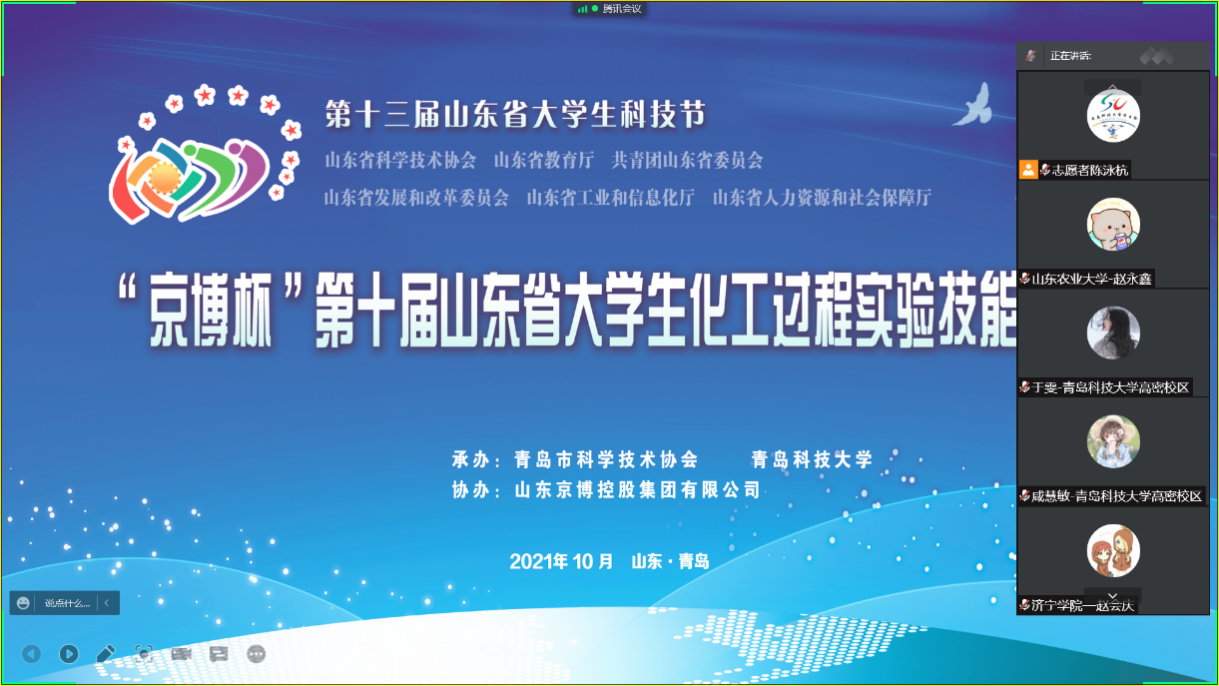 在竞赛期间,由山东省大学生化工过程实验技能竞赛委员会、化工过程国家级实验教学示范中心(青岛科技大学)联合主办的“全省化工专业一流课程线上教学研讨会”在10月31日下午召开。受组委会邀请,狂人小说
