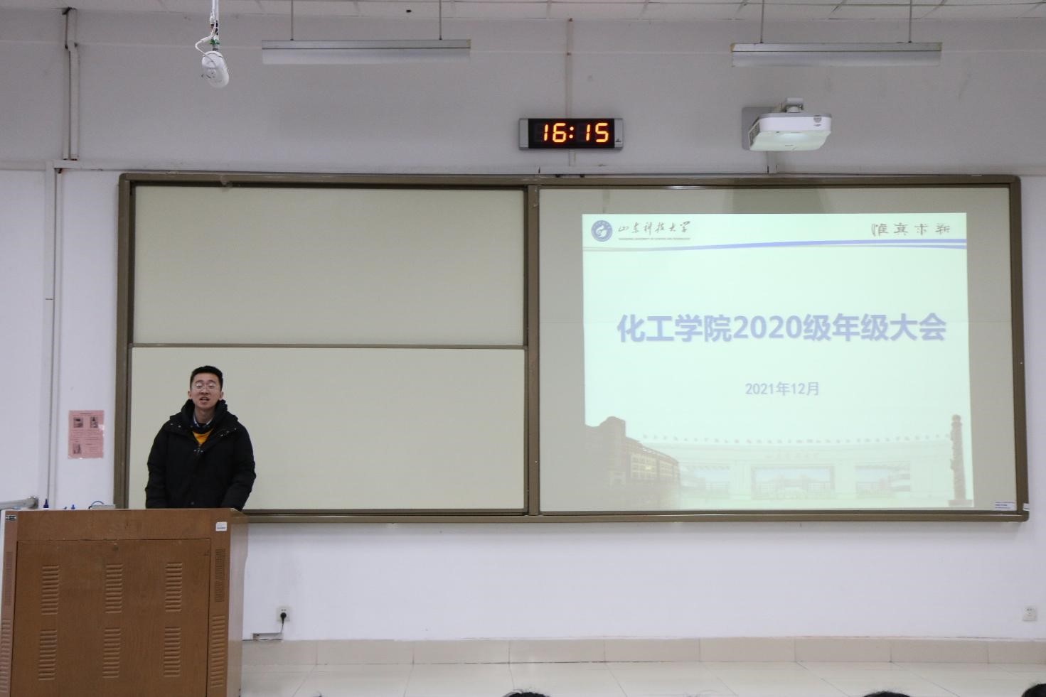 于J1-228召开2020级年级大会,会议由2020级辅导员满灏老师主持,2020级全体学生参加会议。