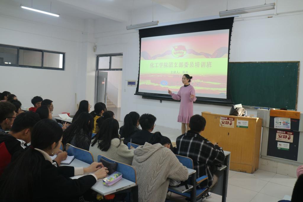 在J5-302举办团支部委员培训班。团委书记易凡、辅导员李玲玲、徐华坤、王大鹏、满灏担任培训班主讲,他们分别结合自身经历以及团支部工作的具体问题,为在场学生做了经验分享,并提出方法建议。各班团支部委员参加此次培训班。