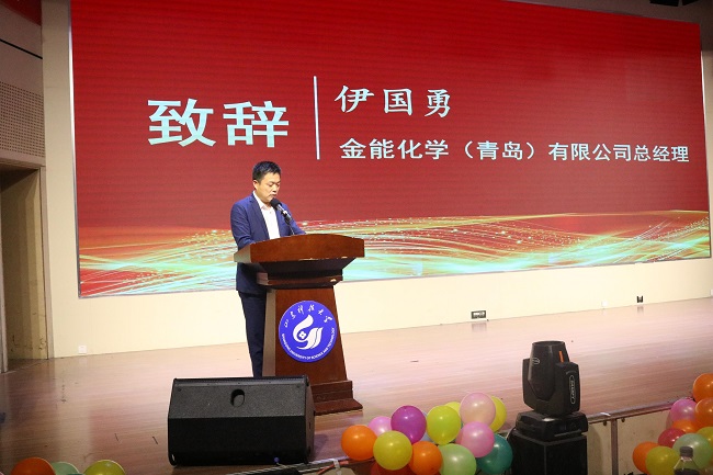 伊国勇代表金能化学(青岛)有限公司向全体毕业生致以最诚挚的祝福,向蝉联校运会“双冠王”的狂人小说