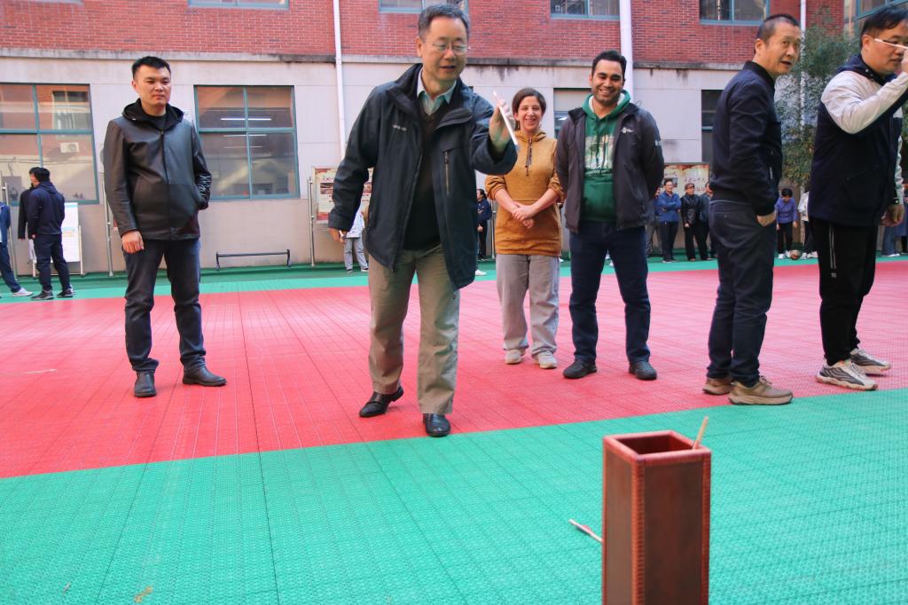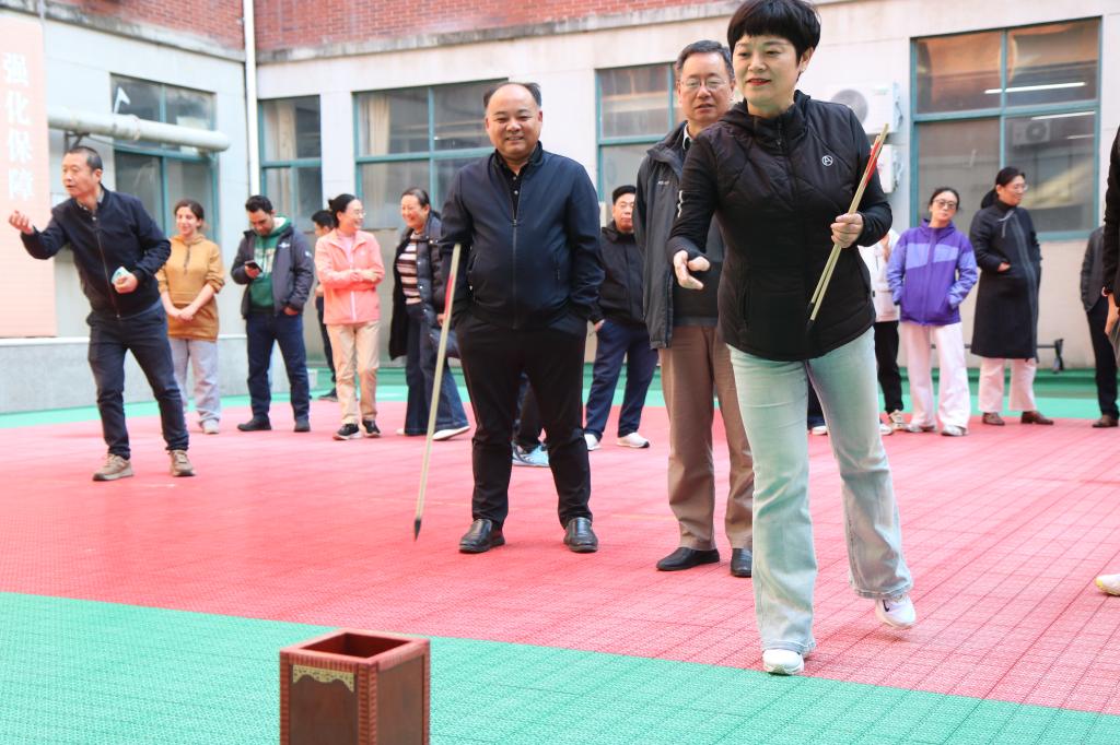 本次运动会共设置投壶、投沙包、保龄球三个趣味项目,各项目同步开展。投壶与投沙包项目采用“擂主挑战赛”模式,增加了比赛的趣味性和互动性,老师们热情高涨、积极投入。在保龄球项目中,老师们全力滚动排球,现场欢呼声、加油声此起彼伏。参赛的教职工们在协作比拼中释放了压力,在欢声笑语中凝聚了团队力量。
