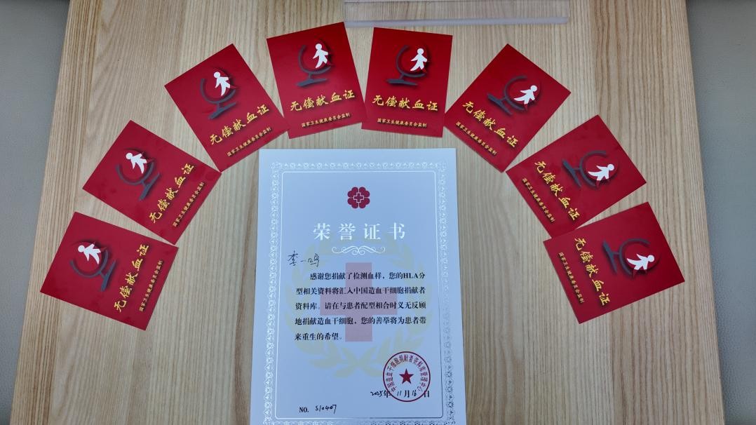采样结束后,青岛市血站工作人员为李一鸣颁发造血干细胞志愿捐献者荣誉证书。他双手接过证书,仔细翻看后放进书包内层,“这比任何奖状都有意义,意味着我多了一个‘身份’——可能为陌生人带去生的机会。”据中华骨髓库山东分库工作人员介绍,李一鸣的HLA分型数据将在两周后录入全国数据库,供血液病患者检索配型,“目前库内志愿捐献者数量仍存在缺口,像他这样刚满18岁就主动入库的年轻人,实属少见,每一份新入库的样本,都可能为患者打开一扇生命之窗。”