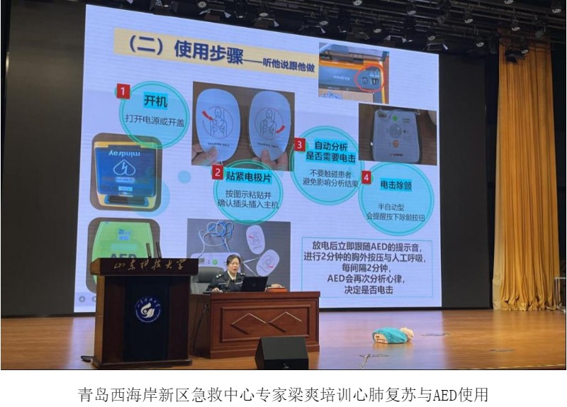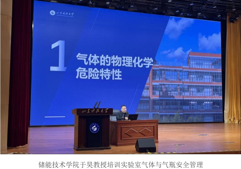 12月2日下午,活动启动仪式暨专题培训同步举行,实验室与设备管理处副处长王鹏主持活动。储能技术学院党委委员于昊教授聚焦实验室气体与气瓶安全管理核心,从气体物理化学危险特性、气瓶分类标识、安全使用全流程、风险识别管控及泄漏应急响应与个人防护等关键维度,进行了全面深入的系统性讲解,精准回应气瓶使用中的常见问题。青岛西海岸新区急救中心专家梁爽则针对实验场景中可能出现的心跳骤停等突发状况,开展心肺复苏(CPR)与自动体外除颤器(AED)使用专项培训,通过专业示范与要点拆解,为师生传授应急救治实用技能。两场高质量培训为后续演练与实操环节筑牢了坚实的理论基础。