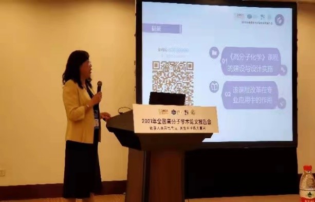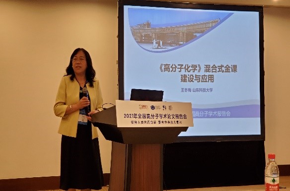 应化系王冬梅教授应邀向大会作了题为《<高分子化学>混合式金课的建设与应用》报告。