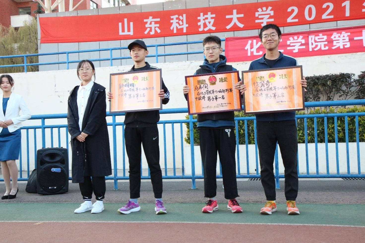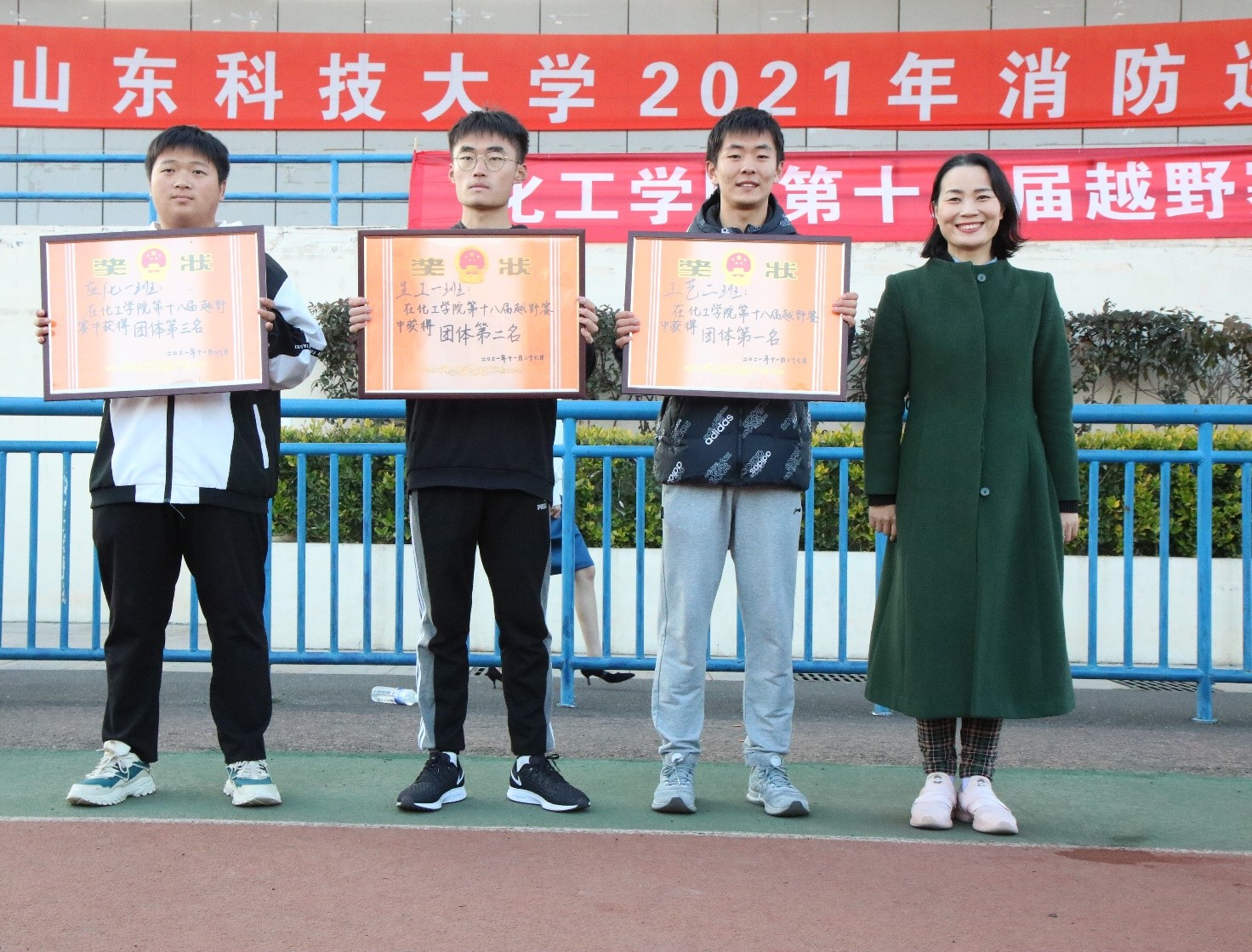此次越野赛以班级为单位,男子组、女子组各一队,采用合作积分制。简短的开幕仪式后比赛正式开始。比赛一开始,同学们都像离弦的箭一般迅速出发。比赛过程中,同学们意气风发,拼尽全力你追我赶,展现出顽强的斗志和昂扬的姿态。比赛途中还设立了多个补给点,为参赛同学提供热水。经过激烈的比拼,最终马韦同、徐国奇、韩明明夺得男子组冠、亚、季军,郑凤雨、李双双、王云喆包揽女子组前三甲。工艺二班、生工一班和应化一班分别获得团体前三名,矿加二班与生工二班获得精神文明奖。