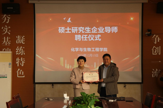 会上,田书记向王录伟副总颁发了硕士研究生企业导师聘书,并合影留念。