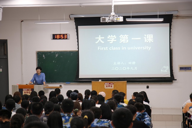 为2020级本科新生召开“大学第一课”,学院党委副书记兼副院长田静担任授课人,2020级新生辅导员满灏及全体新生聆听了报告。