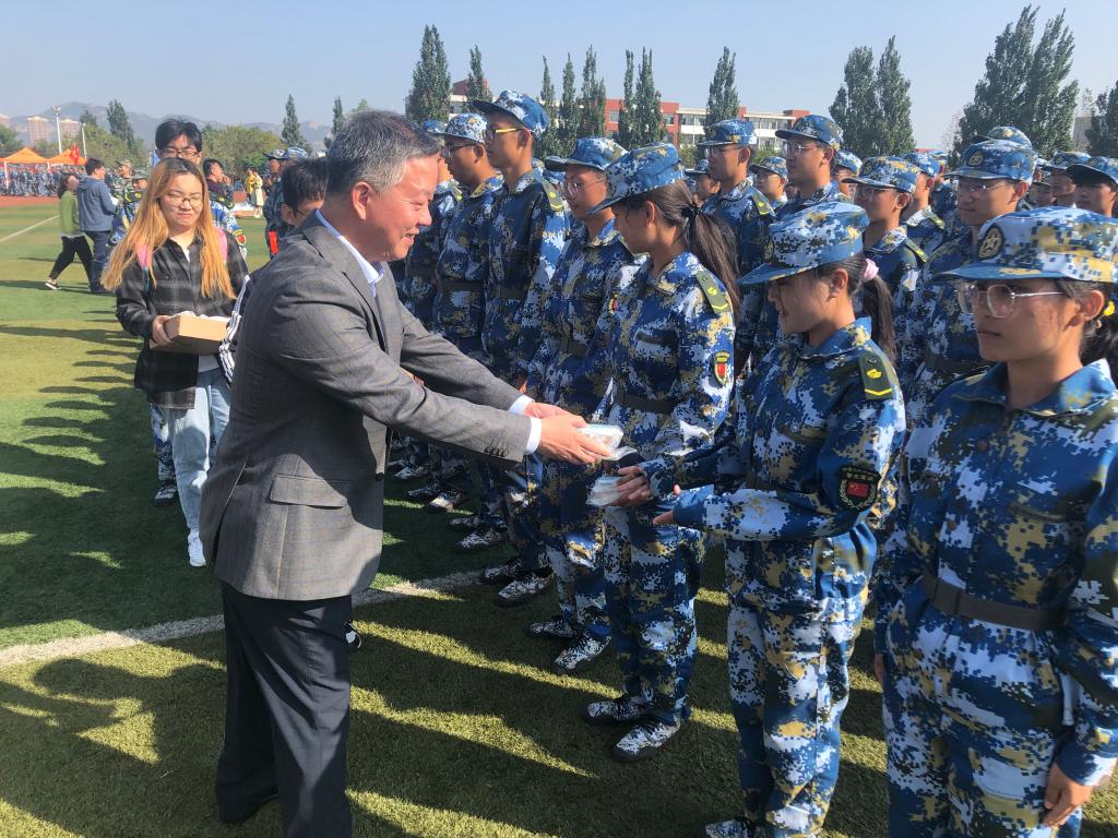 院长吕宪俊、学院党委副书记兼副院长田静,学院学工办主任(团委书记)易凡、新生辅导员及班主任们来到军训场地,将饱含温情、精心准备的节日礼物——爱心月饼送到每一位新生手中,并向他们致以节日的问候,与他们共迎双节、共享喜悦。