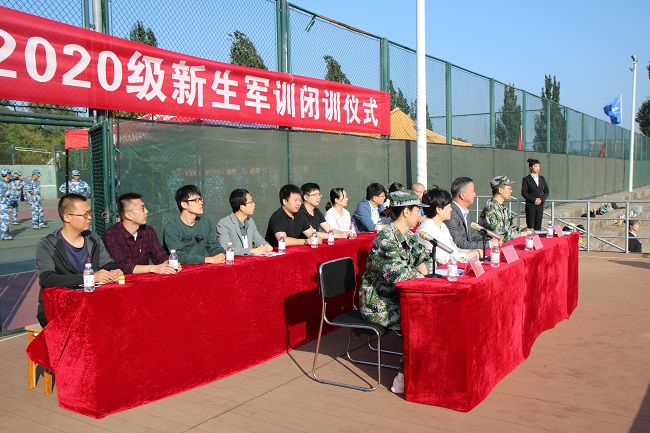 2020级新生军事训练汇报表演暨总结表彰大会在高地操场举行,学院院长吕宪俊、学院党委副书记兼副院长田静,学院学工办主任(团委书记)易凡、2020级新生辅导员及全体新生班主任参加大会并在主席台就坐。大会由易凡主持。