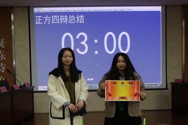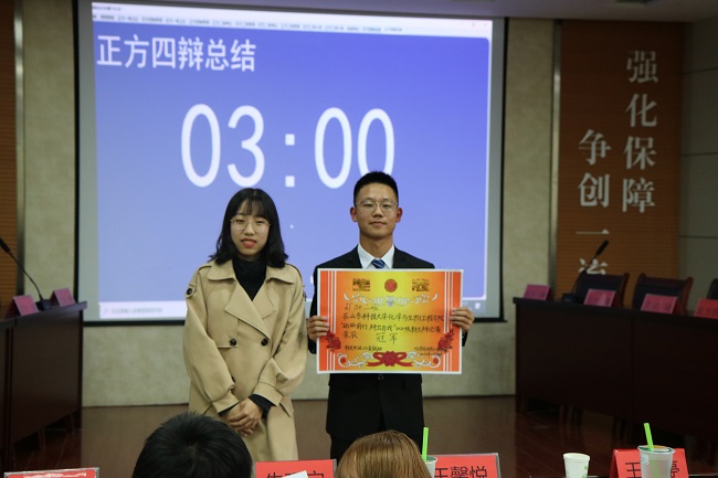 学子能言善辩的才能。随后,评委对本次精彩绝伦的辩论赛进行了评价,各个队伍观点清晰,论证较为合理,逻辑思维缜密,无愧为一场精彩的比赛。经过两场激烈的辩论和评委们公正的评判,最终,应化二班获得优胜奖,应化三班获得季军,应化一班获得亚军,矿加二班夺得头筹。高伟玲荣获本次辩论赛“优秀教练”称号,宋子浩赢得“最佳辩手”称号。