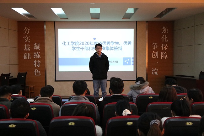 最终,经过评委认真评议,确定推荐化学工程与工艺2017-2班王洁、生物工程2018-2班吴敬龙、矿物加工工程2017-3班刘本超(退役复学)、生物工程2018-1班纪超(退役复学)为山东省优秀学生候选人,硕研2019级学硕班刘帅为山东省优秀学生干部候选人,生物工程2017-2班为山东省级先进班集体候选集体。