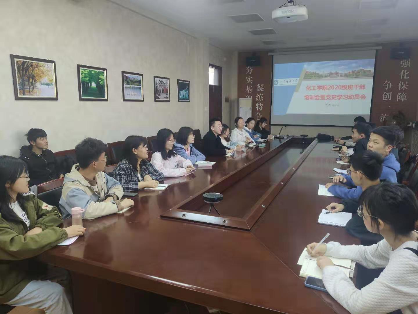 召开2020级学生干部培训会暨党史学习动员大会。会议由辅导员满灏老师主持,2020级全体学生干部参加。