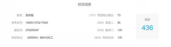 ,就有这样一位优秀的学生,他穿过了那段名为扎根的沉默时光,在今年迎来了自己的高光时刻,以初试成绩436分考入西北工业大学柔性电子研究院,他就是应用化学2017级2班的张树磊。