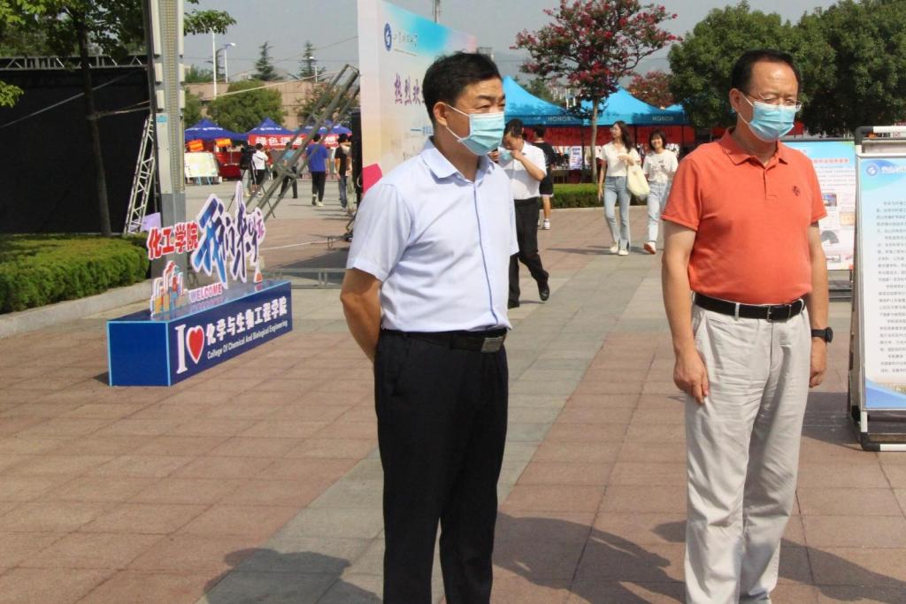 迎新现场,视察学院迎新工作,并对在迎新工作一线的师生们表示亲切慰问。