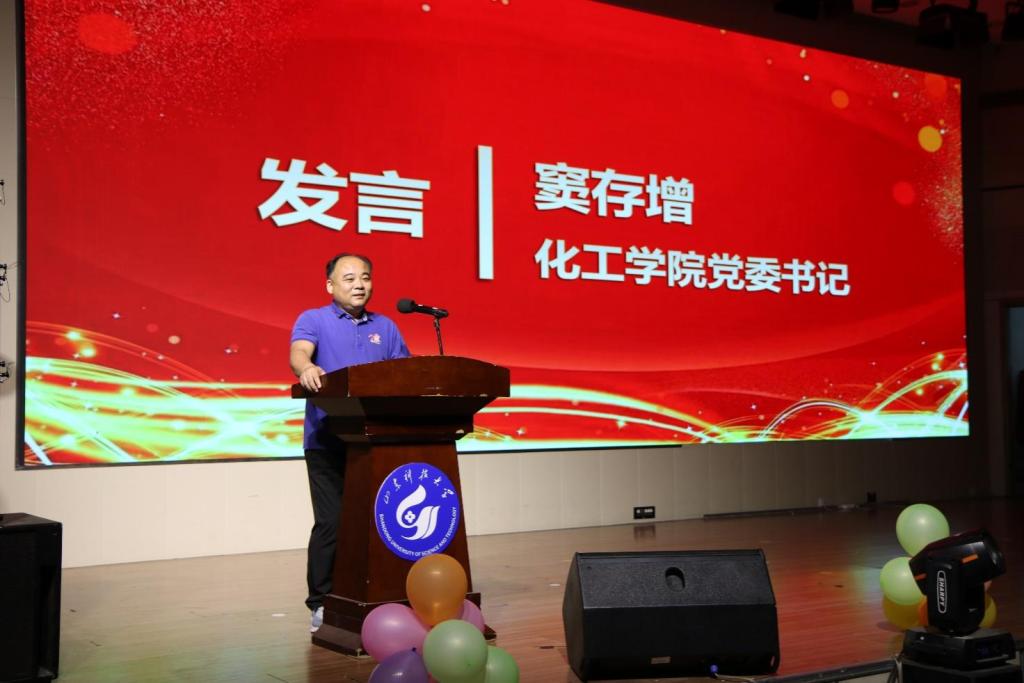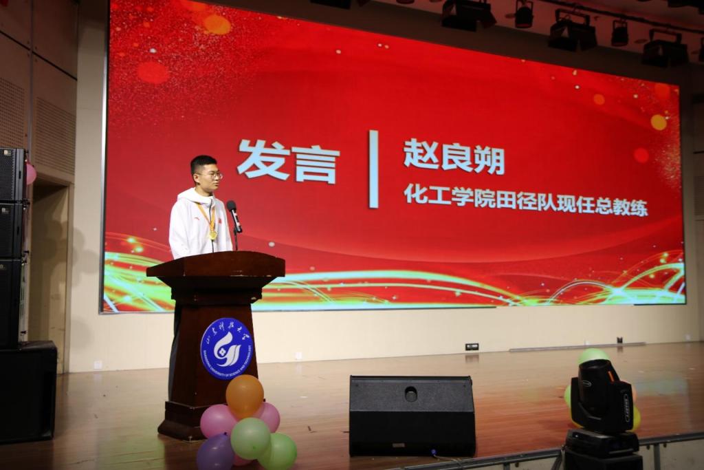 窦存增代表学院向2023届毕业生们和为学院赢得荣誉的田径队健儿们表示热烈的祝贺和衷心的感谢。他讲到,2023届毕业生注定是不平凡的一届学生,亲历了学校建校 70周年和学院建院二十周年的荣耀庆典,走过了最内卷的升学路、就业路,体会了“大学仅四年、疫情占三年”的无奈与辛酸,并将两点载入学院和科大史册:2023届深造率高达57.8%,位居全校第一,再创学院新高;在2023年校田径运动会包揽全部六个分组总分冠军,成为本届校运会的“六冠王”,既延续了连冠的佳话,又创造了新的辉煌。成绩的取得源于一种精神,这就是:勠力同心、院兴我荣的集体主义精神,久久为功、坚韧不拔的艰苦奋斗精神,拼搏奋进、敢为人先的开拓创新精神。这种精神,成为全体化工人共同的遵循,成为一代代化工人共同的坚守,激励着一级级化工学子德智体美劳全面发展、全员成才,这种精神延展传承并不断升华,推动学院进一步高质量发展。随后,他对毕业生提出三点期望:做人要简单化、合理化,做事要精品化、品味化,做事业要现代化、长远化。最后,他预祝学院田径队明年续写传奇、再创辉煌!祝愿2023届毕业生顺心如意、前程似锦!