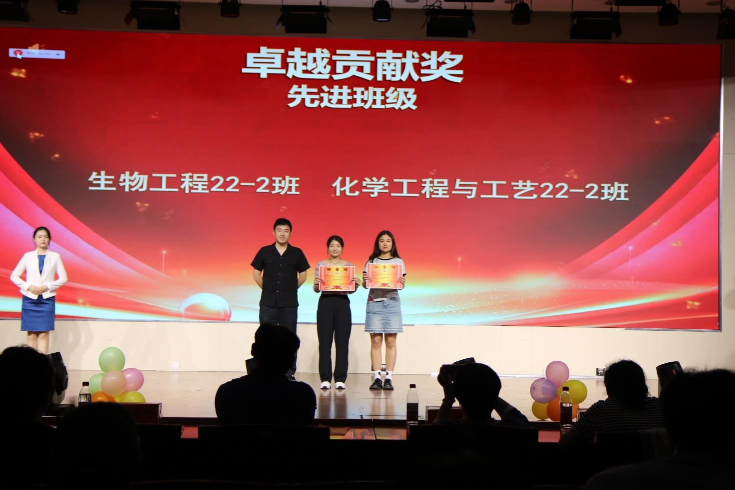 会上,嘉宾们向解庆琳、李邦等获得“杰出新人奖”的22名运动员,张震、秦红金等获“运动健将奖”的18名运动员,田相龙、徐梦婷等获“卓越贡献奖——先进个人奖”的10位教练,研究生代表优选计划辅导员牛纪达、学生会主席王奕苏等获得“卓越贡献奖”的幕后英雄,荣获“卓越贡献奖——先进班级奖”的生物工程2022级2班、化学工程与工艺2022级2班,荣获校运会“得分王”的马韦同、张雨洁、毕岳洋、朱佳琦以及徐威等11名优秀毕业生代表颁奖。