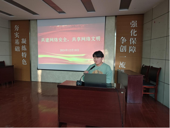 优选计划辅导员庄世豪老师担任主讲,学生会全体成员参加。首先,庄老师从维护网络安全和个人信息保护两个部分,通过分析常见的网络诈骗典型案例,向大家宣传维护网络安全和个人信息保护的重要性。随后,大家针对如何应对网络安全问题展开热烈讨论。庄老师强调,每个人上网应注意自身言行举止,禁止不文明发言,重视社交平台个人的账号安全,共建绿色文明的网络环境。最后,庄老师向同学们发出文明安全上网的倡议。活动后,同学们纷纷表示,以后会更加注意防范网络安全问题。
