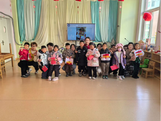 “DIY”手工协会会长赵雅茹的手工课堂开始了。她组织志愿者们把带来的原材料分发到每个小朋友手中,耐心地指导小朋友们制作了新年贺卡。制作完成后,小朋友们纷纷展示自己的作品,用稚嫩的语声表达对农历年的美好祝福。最后,参加活动的双方师生拍照合影留恋,整场实践活动在一派欢乐祥和的气氛中结束。