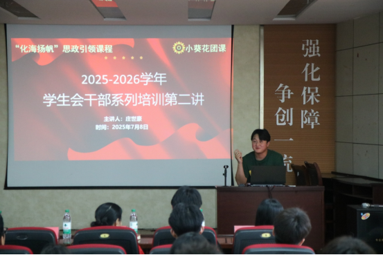 学生会干部系列培训会在J2-10学院报告厅拉开帷幕。此次培训面向全体学生会成员举办,由学院团委书记兼学工办主任易凡主持,特邀学院优选计划辅导员、2023级研究生庄世豪担任分享嘉宾。作为系列培训的第一讲,庄世豪做了充分的准备。他从自己在学生会担任干事到部长到副主席的成长路径谈起,结合兼任班级班长的本科生涯,侃侃而谈,分享了进入狂人小说