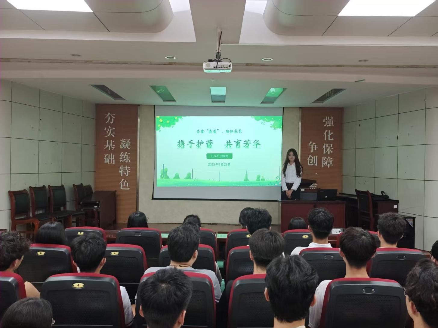 “关爱‘春蕾’,陪伴成长”主题团课在J2-104召开,作为该系列主题团课的第二讲,此次课程的主题是“携手护蕾 共育芳华”,由“护蕾”志愿者刘雅雯主讲,全体学生会成员参加。