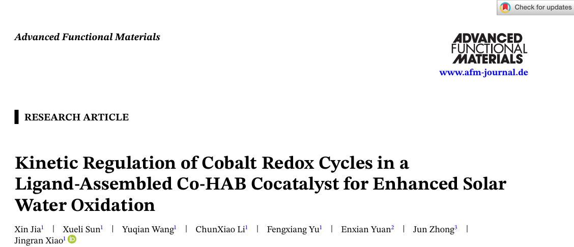 肖静冉(学术教授)等人在光电催化水分解领域取得重要进展,相关成果以“Kinetic Regulation of Cobalt Redox Cycles in a Ligand-Assembled Co-HAB Cocatalyst for Enhanced Solar Water Oxidation”为题发表在国际知名学术期刊《Advanced Functional Materials》上(中科院一区Top,影响因子:19),该文章第一作者为狂人小说